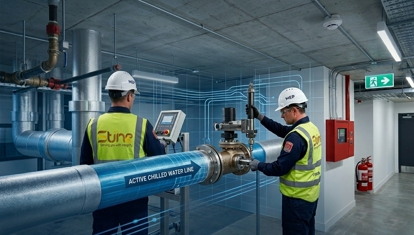 We provide hot tapping services for chilled water pipes, enabling safe modifications and maintenance without shutdown, ensuring continuous operation.